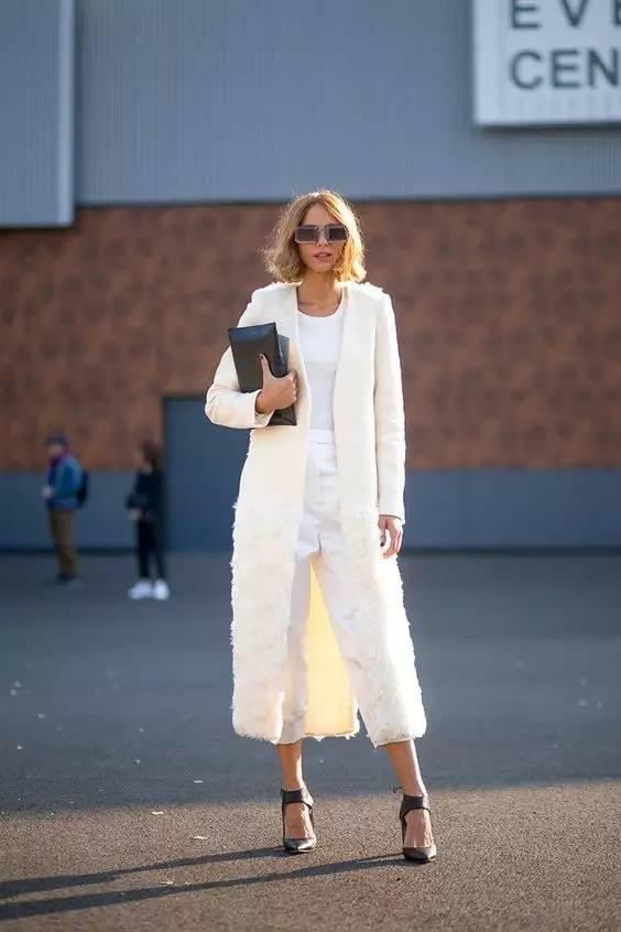 不得不说,冬季的时候穿白色搭配,站在拥挤的人群中,那你一定是最特别的存在。适当的来一点配饰的点缀,那就是非常棒的锦上添花,比如我们可以拿一个黑色的手提包包,穿一双黑色的高跟鞋,这样子就不能能够轻松的打造优雅的气质。