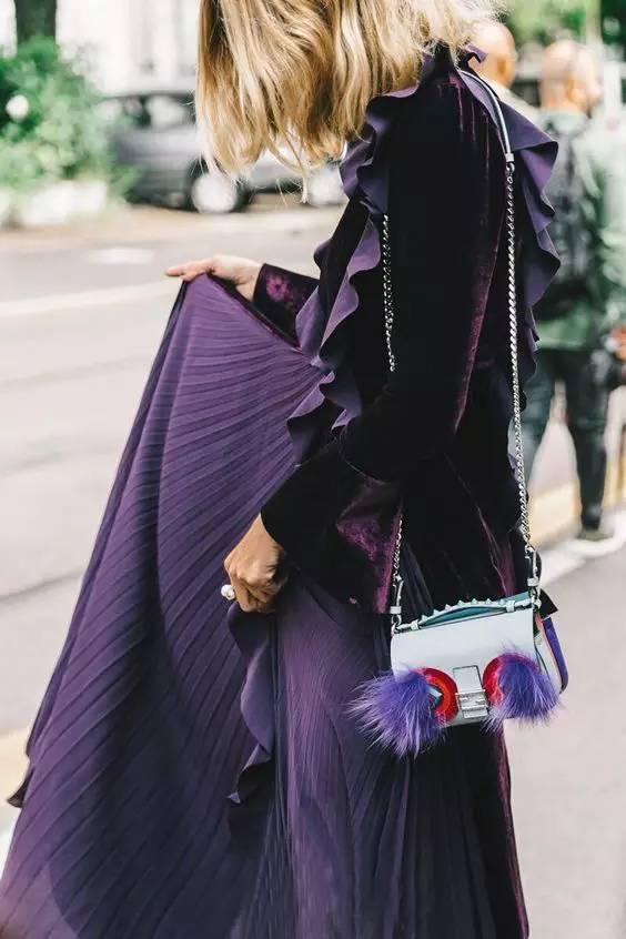 一向被称为拥有神秘感的紫色,其实有点难以驾驭,相信我们的小仙女如果想穿出高颜值,还是要花点时间与功夫的。而我们的这套紫色上衣与紫色的百褶裙,让这个冬季变得不再黯淡,增添了一抹亮色。