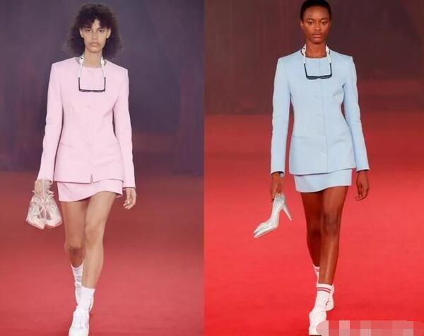 Off-White 2018年春夏系列的模特单手拎着高跟鞋,脚踩一双舒适小白鞋的样子相当酷炫了,这样的设计也正好反应小白鞋的潮流地位无法撼动。