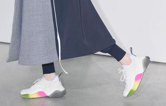第一,今年的小白鞋首先底要够厚,受大火的老爹鞋影响,小白鞋也全面走起了复古路线。你以为我要开始讲Balenciaga的TripleS吗?NONONO!现在时髦的人都开始穿Stella McCartney的这双彩虹底Eclypse了。Eclpyse有两种款式可以选择,魔术贴搭配的是岩石花纹鞋底,看上去更有质感,而绑带款的彩虹底则更青春动感。