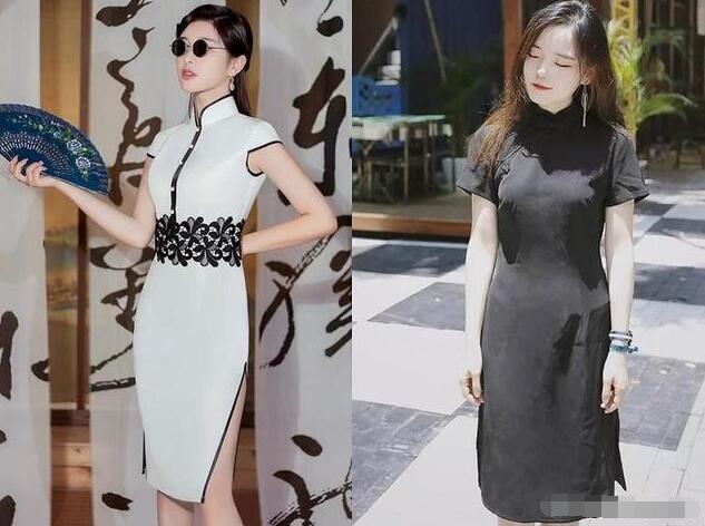 旗袍的韵味是由内而生的气质,所以外表越为干净纯洁的设计反而可以映衬出内心的美丽。首先典雅朴素的白色旗袍修身剪裁,腰间搭配上黑色蕾丝镂空设计感觉优雅高贵了许多,而纯黑色的旗袍也可以设计成休闲日常的款式,会感觉清新自然许多。