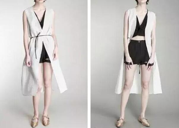 更吸睛的造型感来自于别致的搭配,大V领的黑色背心非常适合脖子短的女生穿着,视觉拉长脖子线条根本不是事儿,搭配个性破洞的短裤,足够显酷,加上外披的长款无袖衬衣,果真极具T台模特feel,简约的色彩,高级的时髦范儿,腰带的点缀也相当不错,根据个人喜好吧,可系可不系,夏季穿搭不会担心很热哦,因为透气性比较好,女人味十足的穿搭!