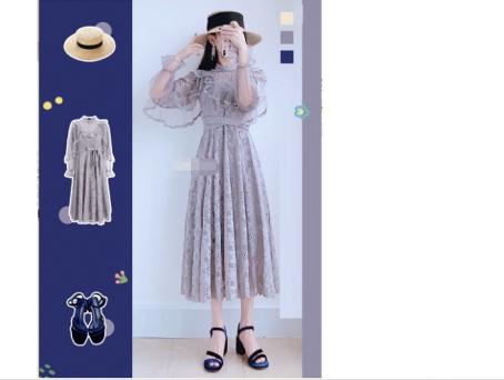 这条裙子真的太洋气了吧!整体的灰色调特别有有高级感,立领的水溶蕾丝迷人优雅,超级的有梦幻气息,袖子清透的浅灰色轻纱感觉特别的飘逸,镂空的蕾丝很有设计感,整条裙子一看上去就有一种富贵人家大小姐的贵气,像是重工打造出来的,腰部的绑带可以系到后面也可以系到前面,梦幻浪漫、优雅端庄,还有满满的少女心都是一览无余的展现出来了。