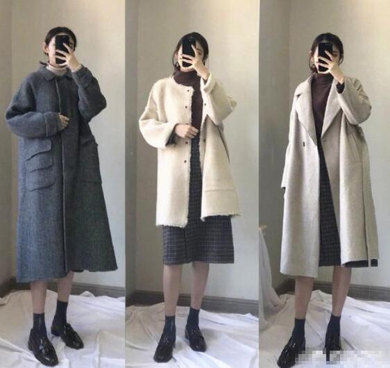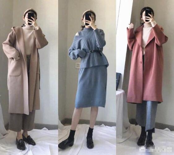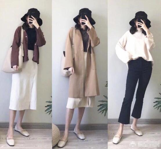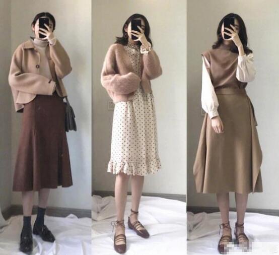 巧克力色的过膝半裙+米色高领毛衣+驼色短裤羊驼外套,超级温柔软糯的一组穿搭,或者卡其色的半裙搭配衬衣,外搭短袖小背心,温柔透着帅气。