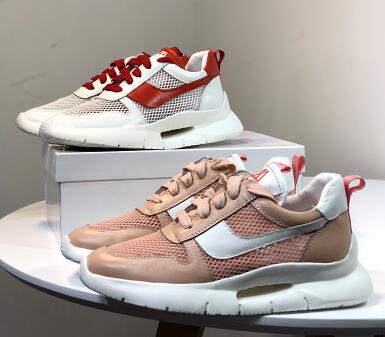 很多人会觉得这种纱网运动鞋的设计比较怪,但是事实上,这种纱网运动鞋的时尚感是非常强的。纱网的鞋面设计让鞋子本身的层次感更加的强,同时鞋面也更加的柔软。
