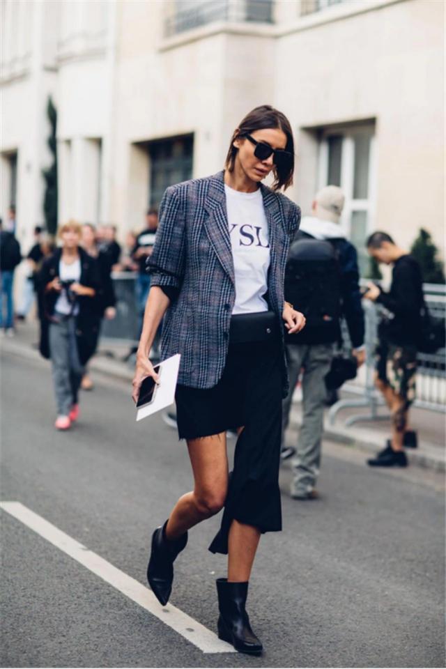 西装外套在初秋的穿搭中可谓是占据着举足轻重的位置,既能够打造休闲运动风,也能够打造出复古知性风,是奔四女性凹造型的首选外套!作为日常搭配,最重要的就是打造休闲感,所以内搭可以选择一件轻松的T恤,下身搭配牛仔裤或者短裤都很OK,想女人味一点的话可以选择一条半裙与之搭配哦!