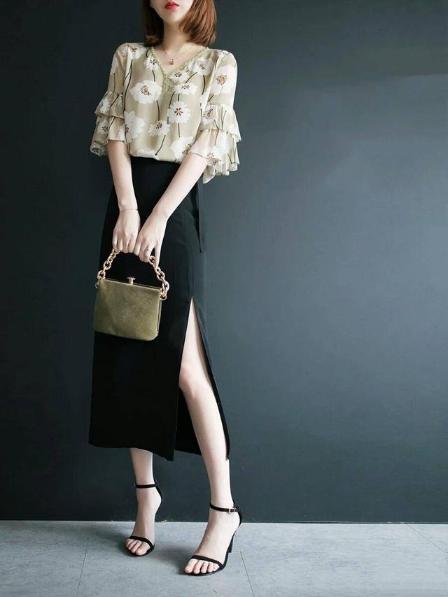 30+的女性摆脱了20岁的青涩稚嫩,生活和思想上的独立让她们气质又成熟。高腰裙装和衬衣的搭配,经典又不过时,高开叉的设计不再如传统裙装包裹得严实,恰巧露出的腿侧曲线,彰显女性的柔美,素色雪纺衬衣,典雅大气的花型图案搭配荷叶重袖,适合皮肤白皙的娇小女性,搭配一字扣高跟鞋,知性又柔美。