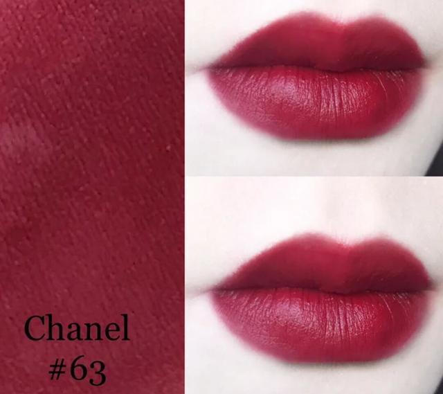 香奈儿63这只口红的颜色是偏蓝调的酒红色,涂抹上嘴颜色更偏向于玫调的姨妈色,简直就是秋冬必不可少的一款口红色号,超级显气质。薄涂的话是淡淡的蔷薇色,给人一种温柔小姐姐的感觉,比较日常涂抹。厚涂就是提亮皮肤,非常显白。深棕色偏向于复古气质,可以凸显气质,能够很好地升一个人的气场。
