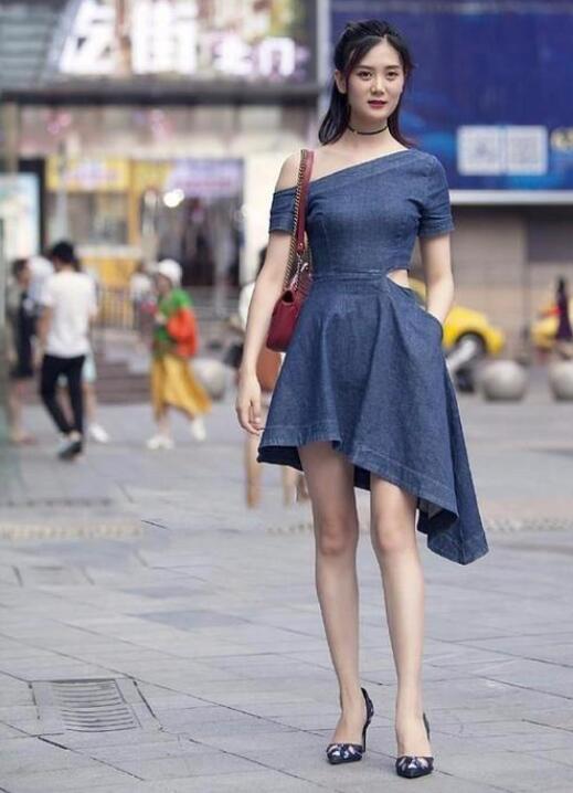 而且它自身的设计元素非常多,可以融合多种多样不同种类的设计元素,打造出不同风格的气质,所以每个女生都可从中找到适合自己的单品。比如这件不规则裙摆的牛仔裙,可以让经典百搭的牛仔材质更加有格调一些。