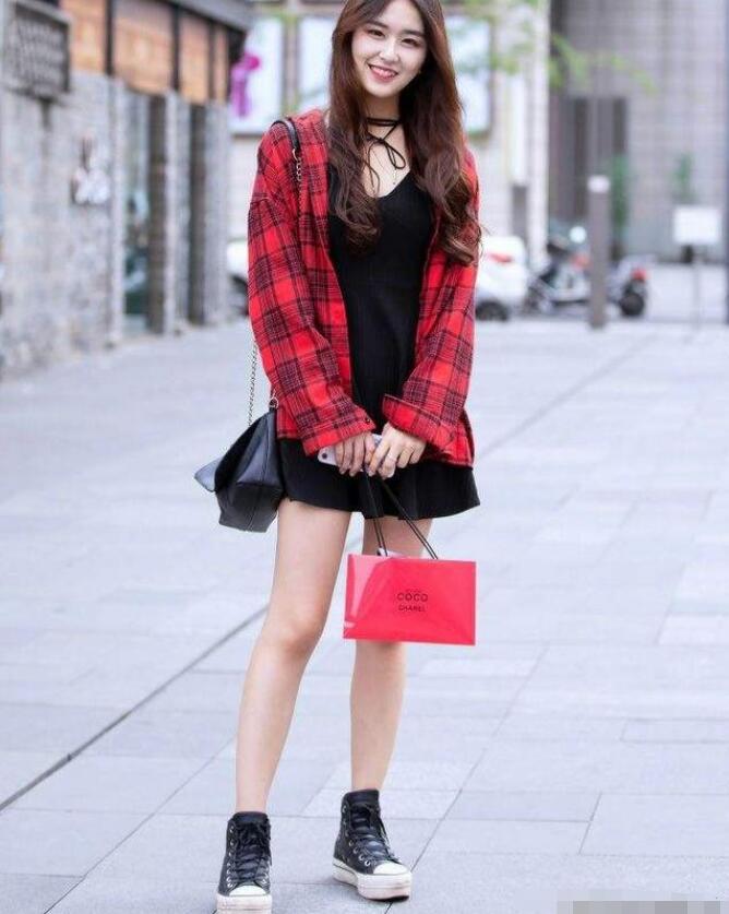 如果穿的是简约轻熟风单品,也可以外搭一件格纹外套,收敛一些整体的效果,让带有小性感元素的单品呈现出更多的甜美气息,提升整体的辛辣感。