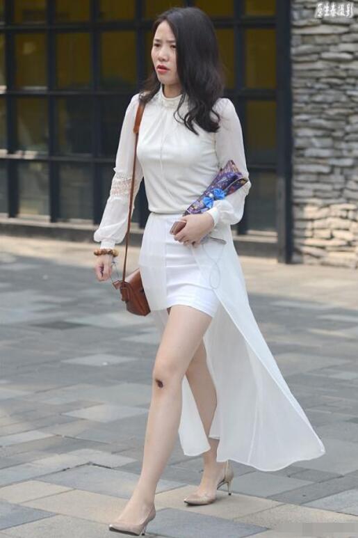 裤装的话不管是牛仔布还是西装布,给人的感觉都是干练休闲的日常装扮,但是对于裙装来说可以选择的范围就会大很多。比如这件白色的网纱裙,轻薄飘逸的材质袖口处还拼接了成熟性感的蕾丝面料,知性又优雅。