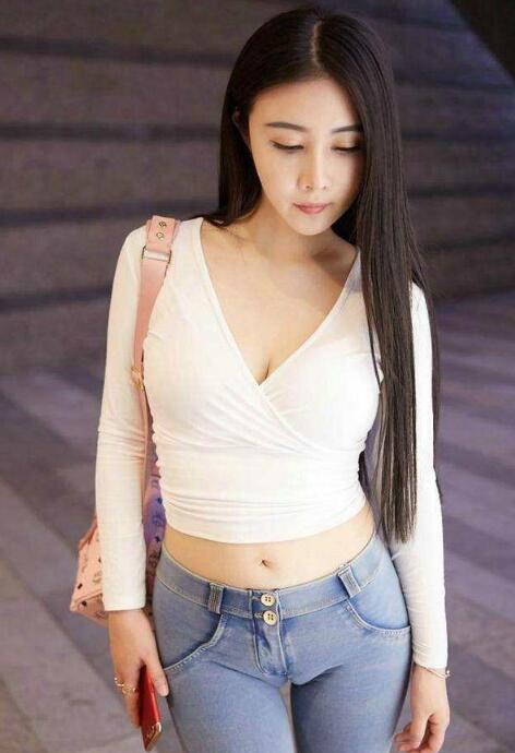 紧身牛仔裤是美女们都喜爱的裤装之一,因为其紧身的款式塑身效果是非常棒的,可以修饰双腿让你看上去会更加高挑。而且还是百搭中的圣品,让你可以随心搭配任何衣服和鞋子。逛公园的时尚美女,看上去是很有闲情雅致的,也许正是因为这种闲情雅致的心情,使得她看上去是非常美丽的,心情美一切都美啊。只见她上装一件白色的低胸衫,下身一条蓝色紧身牛仔裤,这牛仔裤可真的是亮点哦,牛仔裤的布料看上是非常柔软的没有那么僵硬,使得人们乍一眼看上去就像是画在腿上的一幅画似得,非常有内涵。