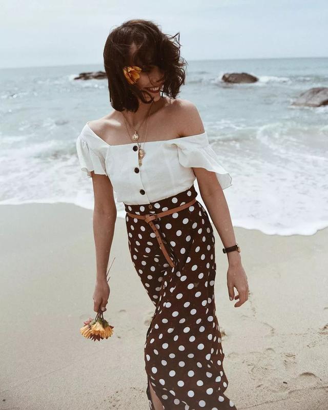 打造活力俏皮的复古风,一件小吊带或是波点上衣是必不可少的~平胸妹子穿这类型的上衣,凉快又省事,不会出现较为尴尬的场面~并且平胸能展现出恰到好处的少女化性感,不会过于成熟化,彰显出活泼可爱的少女气~
