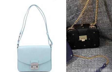 第二款的这两个包包相比第一款要更小一些,同样适合春夏季节,春夏穿衣比较单薄,需要带的东西也不是很多,如图的这两款是不同色系的,第一款是浅色系的蓝色,第二款是百搭的黑色,可以根据自己的喜好选择。二者都是链条包,链子看起来闪闪的,很好看,不管你是小清新风格还是成熟气质型都可以很好的搭配。