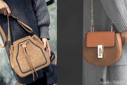 第三款的两个包包是比较有特色的。颜色都是属于棕色系的,这个颜色是暖色系,颜色很百搭。两个的造型有所不同,左边的设计稍微复杂一点,加了流苏之后看起来就没有那么单调了。右边这个是很简单的类似于半圆的形状,材质是磨砂的。这两款休闲时尚都可以搭配,不管哪一款都很时尚好看的。