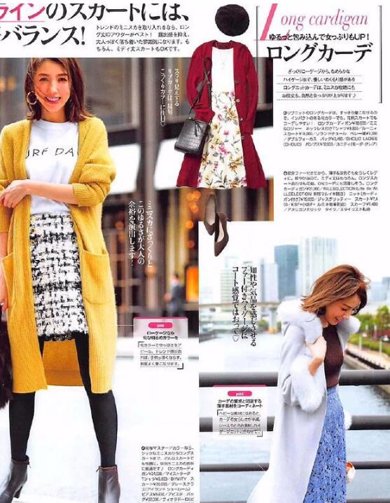 针织长款毛衣+格纹小香风半裙+白色卫衣,颜色鲜艳又衬肤色,搭配尖头裸靴,尽显腿长及优雅的腿部线条感,毛呢大衣+深咖毛衣+蓝色镂空蕾丝半裙,温柔又时髦。