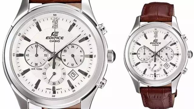 该品牌所代表的活力、年轻、时尚、多功能的形象已深入民心,西欧手表进入中国市场较早,它的G—SHOCK系列早为人们所熟知。卡西欧这款EDIFICE系列白色表盘,条形刻度搭配银色指针,12点位置采用了水晶仿钻设计,优雅高贵、干净简洁,是休闲、商务搭配的不二选择。