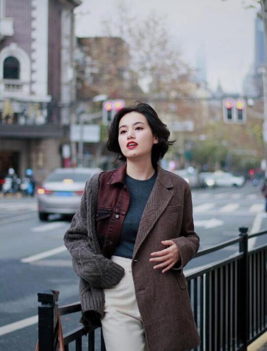 开衫采用无领的设计能更好地体现出衣服的层次感,也不会因为领子的重叠引起臃肿的感觉,在冬天穿层次感强烈的搭配时,一定要选择简洁的类型这样穿在身上才会显得更和谐。加一款深蓝色的毛呢外套,很显气质。穿毛呢外套的时候,深色格调会与这个季节更加相配,在搭配层次感强烈服装的时候,脚上的鞋子最好要选择纯色的格调,可以选择黑色也可以选择和整身衣服色彩递进的色调。