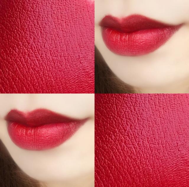 虽然阿玛尼家的405烂番茄色真的超级的火,但是个人还是更偏爱这款400色号,感觉这个颜色会比405相对更加显白百搭,坦白说405不如这款颜色更适合黄皮。它是属于那种带点蓝调的红色,被大家称之为“绝美的正红色”。因为它涂上真的超级有气场,尤其是厚涂的时候很显白。哑光丝绒的质地,上唇非常顺滑好推开,而且不会拔干,灯光下会有一种冷艳的感觉,涂上就是妥妥的气质女神了。