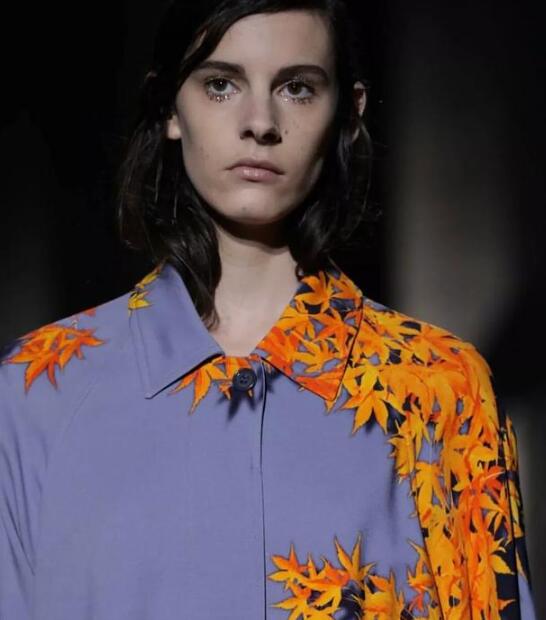 首先是花衬衫的花型要选好,衬衫不像连衣裙,穿起来占全身的比例最多也就二分之一,因此比较大花型很难在全身都展示出来。所以小碎花是很多花衬衫的首先图案,但是小碎花的尴尬之处就是容易显得土气。所以建议大家最好选择一些抽象的、或者艺术风格比较明显的印花图案,而避免选择一些颜色比较单一、图案过于仿真的印花图案,这种印花图案会显得廉价、不够高级。