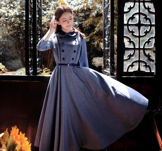 打造淑女名媛的形象,大可入手这款连衣裙。素净的色调和褶皱大下摆,让你举手投足间很有淑女的温婉文艺气质;撞色的娃娃领和双排扣,时尚中又不失复古韵味;腰带帮你打造曼妙的迷人身姿,穿上它,尽惹人爱怜!