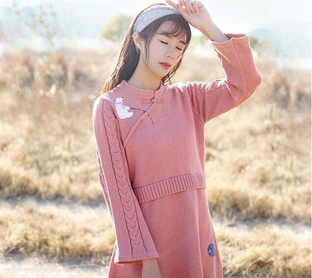想有个美好的约会,怎能少了这款复古的改良式旗袍连衣裙。它素雅的色调,散发出浓郁的文艺气息;盘扣小立领与童趣的刺绣,又让你多了几分俏皮的淑女视感;考究的针织花样和假两件设计,穿上他,窈窕惹人爱~