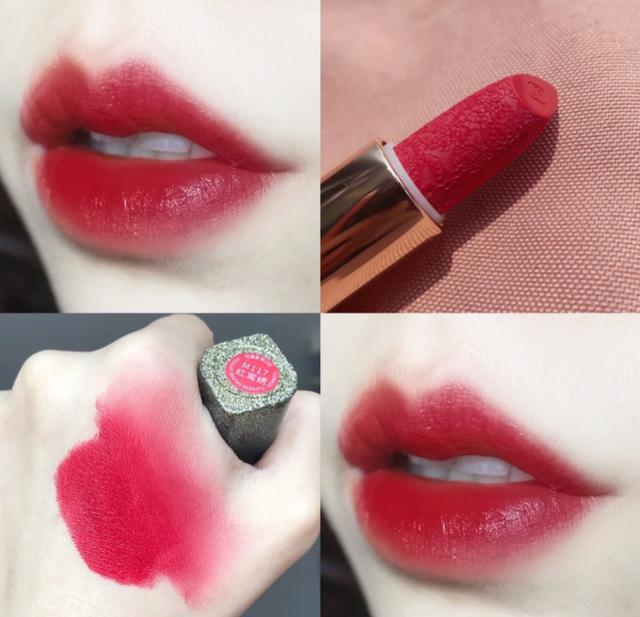 花西子这支红鸾秀M117色号是我爱的玫调红,颜色薄涂的时候真的非常的灵气显气质,有种少女草莓感,颜色很显肤白。刚开始始于颜值,看到膏体就有一种让人看了就像惊叹的浮雕花纹,真的超显高大上。很多人说这支口红是正红色,但我涂起来的时候有点带玫调,饱和度很高,色泽浓郁,轻涂一层就显色,非常的滋润上唇很好涂开,而且不会油腻,平常用的时候喜欢用纸巾抿掉一层,呈现出来的就是轻雾哑光感,而且不易沾杯。