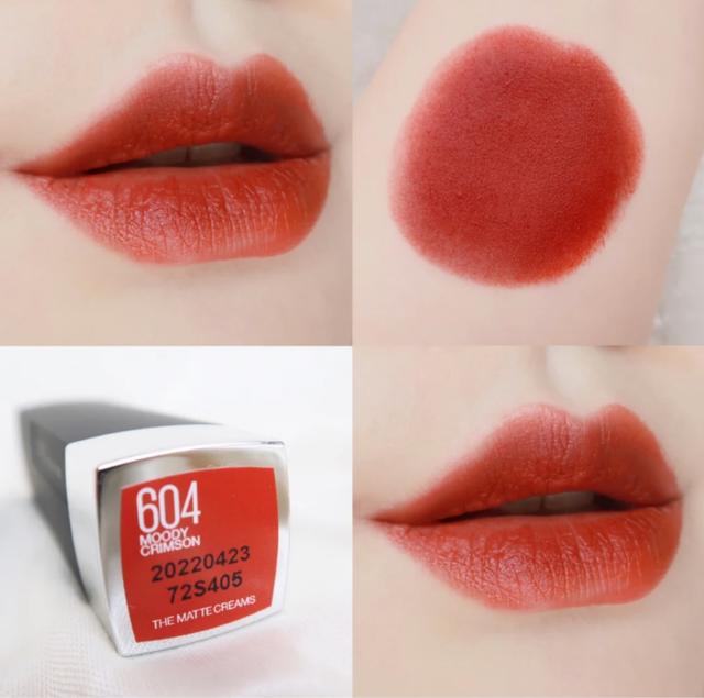 美宝莲这支口红是一直看上去非常活泼的朱砂橘色号,虽说是正红色,但是特意添加了一些橘调会显得更加的活泼不呆板,红调和橘调调和得恰到好处,对黄皮也是非常的友好,因此它是一支非常显白的口红。口红是属于奶油的哑光质地,颜色真的是非常正,又显白又日常,上唇后色泽非常的浓郁饱满,显色度可以说是非常高了,不过我更喜欢厚涂,因为它更偏红调,对于一些正式场合或者派对都能轻松Hold住。