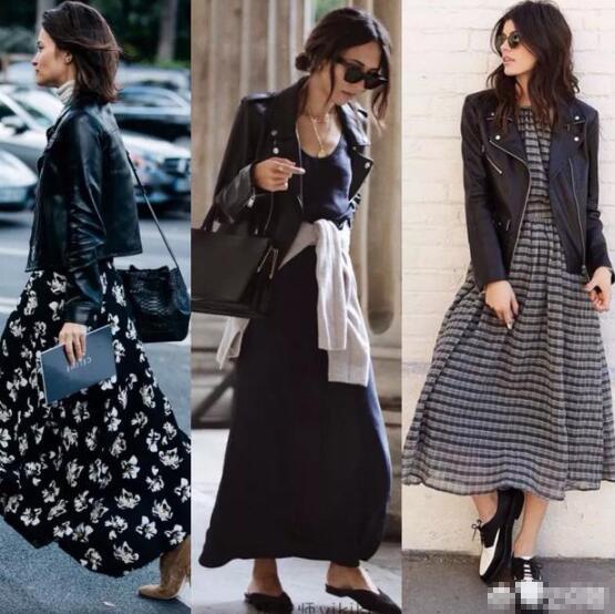 小皮衣搭配连衣裙,我觉得这是比较简单的懒人搭配了,夏日未收起的吊带连衣裙,无论是花色丰富的印花裙,还是颜色素雅的棉麻裙,都可以穿的很有女人味。