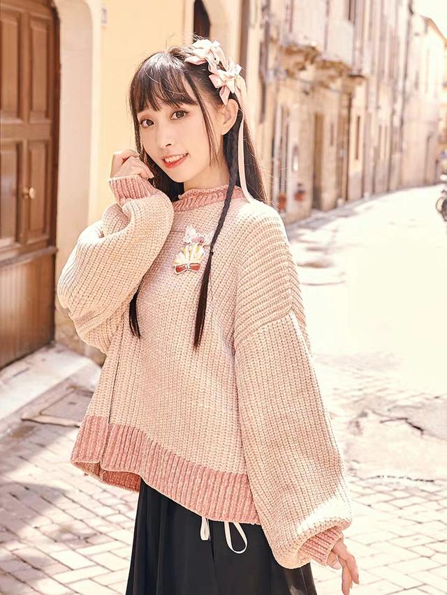 这件毛衣整体是一个比较日常的暗粉色,不会让人觉得太亮或者是太粉。秋冬毛衣怎么穿搭图片在衣服的背后还有一个绑带的设计,在不经意间就透露出了一点小小的心机。这件毛衣最可爱的地方在于搭配了一个小螃蟹的绣片,非常的可爱,最重要的是它是可拆卸的,可以把他放在我们想放的任何地方。