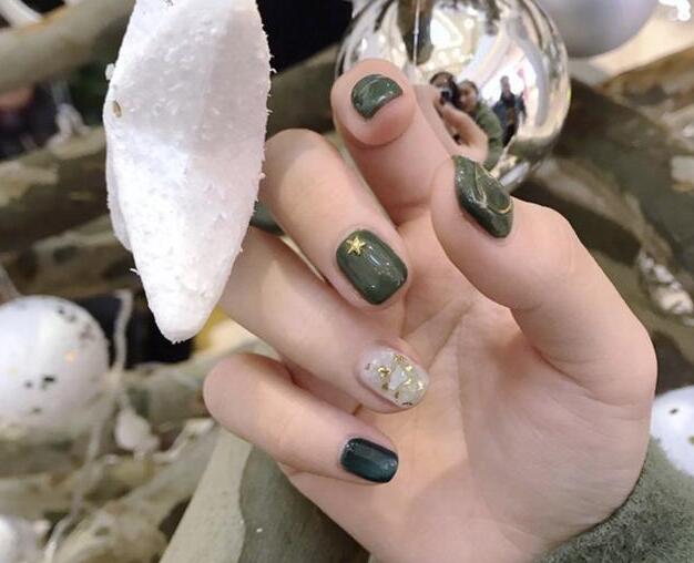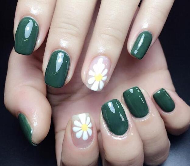 高居C位的墨绿色,深沉浓郁,复古高贵,简直是手黑妹子的显白色榜首呢!那么充满小清新又代表着生机的颜色,最适合在春天这个季节换上了,不得不说这样的美甲真的是太好看了,而且还十分显手白!