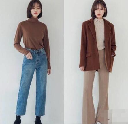一条裤子的不同搭配出不一样的风格~左图偏学院风,焦糖色的针织衫搭配一条牛仔小阔腿~营造出不造作的随性~右图偏职业女性啦,焦糖色的西服外套搭配奶茶色阔腿裤,整个人精神满满很适合上班族哟!