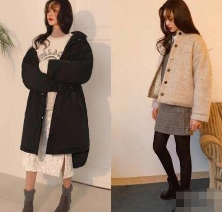 右图简直太适合不过,过年穿啦。典型的大家闺秀的淑女风搭配~不管走在哪都会被吸引住目光,一看就是典型的乖乖女~白色的毛呢短外套搭配格子裙,淑女风中也带有几分卡哇伊!左图就是元气美少女啦,虽然是黑色的棉服显得较为稳重成熟,但是内搭搭配白色卫衣加蕾丝裙,一下从轻熟拉回来到元气满满~在搭配一双灰色翻毛皮靴,这身搭配真的很实用。出门逛街走在路上,会吸引很多目光哟。