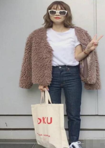 有时候看一些搭配种草不禁感叹,为什么都这么瘦,瘦,瘦?所以这是必备第十套,微胖小姐姐们的福音,瘦有瘦的美,胖有胖的美~藕粉色羊羔毛短款外套加牛仔裤配上帆布鞋~真的是元气风满满~很有活力的一套搭配。内搭是一个白色的短袖,怕冷的小仙女们也可以搭配毛衣~单看上半身其实是偏轻熟风,但是牛仔裤加帆布鞋一搭配就是满满的元气风啦~