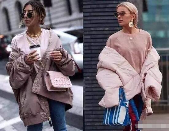 干枯玫瑰色的短款外套搭配蓝色的牛仔裤,非常帅气又休闲的搭配。我觉得这一组配色也是可以值得我们借鉴。女装搭配。