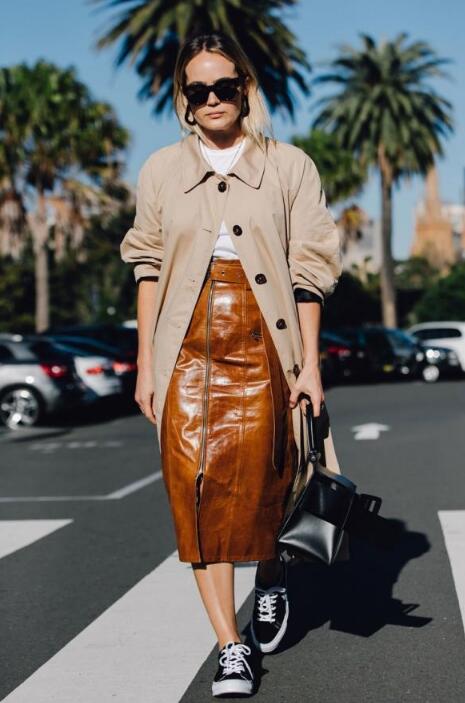 最能够穿出女人味的,非皮裙和蕾丝裙莫属,稍后小编就会给小仙女介绍蕾丝裙与大衣的搭配,先让我们看看大衣与皮裙的表演。