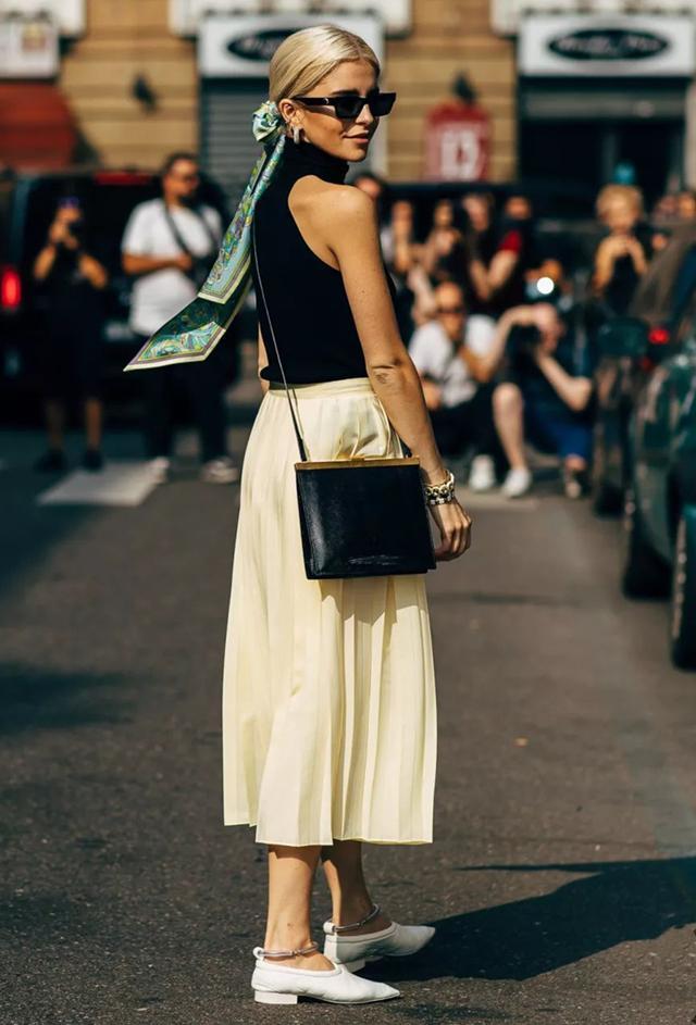 除了需要注意褶皱的宽度,材质的选择也很重要,百褶裙一定要选择垂感很好的西装、缎面材质,一般不要选择雪纺的材质,如果真的喜欢,可以选择比较厚的雪纺材质,这样会另整个裙子看起来更加有垂感有质感,在视觉上也会显瘦。