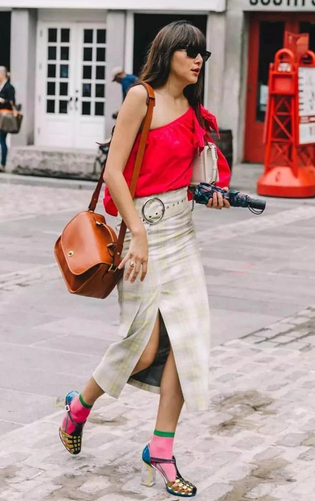 看似十分容易暴露身材缺陷的直筒款式的半身裙融入了开叉的设计,减少了裙子的死板和束缚,小面积的露肤营造出了若隐若现的性感,如果搭配短款上衣或者是今年比较热的crop top,会露出小蛮腰,拉长身材比例,更加显腿长。