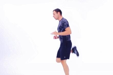 第一个动作我们来完成一个后踢腿动作,像图片中给我们示范的一样,我们在做一个跑动动作的时候,需要将腿向后踢,保证我们的脚后跟能够更接近臀部。如果你不理解的话,就参照图例去完成这个训练动作,如果,你对这个动作有一定基础的话,那么可以试着将你的动作速度做快一点。