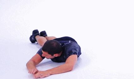 最后一个动作,我们来介绍一个俯卧飞燕的变式动作。首先我们需要保持一个俯卧姿势,然后做一个飞燕的动作,稍微起身之后我们需要做一个摆动动作。如果你不理解的话我们就看一看图片的示范,将你的动作速度尽量放慢一点,感受一下身体肌肉的紧张,就会有利于我们的训练。