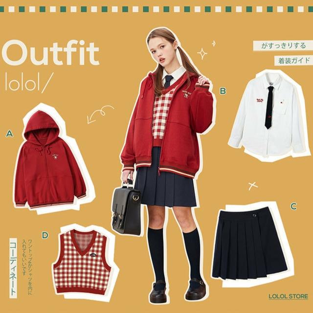 如果你觉得衬衫太具中性风,也可以再外搭一款马甲,不仅增加了温柔气息,马甲的搭配也会使造型更具丰富多彩感,不会太单调乏味。温柔款的马甲当然少不了温柔风的裙装,流行的百褶裙增加了造型的时尚感,也很具少女感,再搭配一款小皮鞋,便8会使整体造型很具精致感。外搭一款简单的运动褂,也能中和裙装和小皮鞋的开放感,既时尚又不失学生气息。