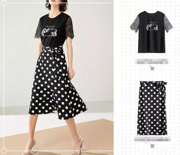 这组是夏季最百搭不挑人的轻熟风穿搭,经典黑色的上衣T恤,蕾丝的衣袖,看上去很特别,显得个性又减龄跟波点半身裙搭配散发出迷人的气息,呈现出都市现代女性的轻熟风格,凸显出休闲时尚的女人魅力。