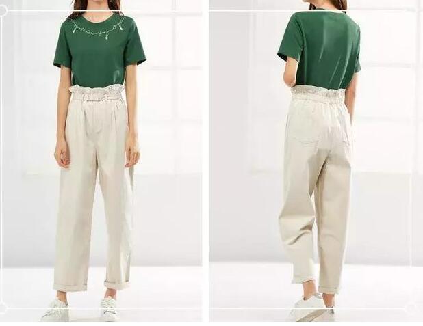 职场中MM们的穿搭都是以时尚轻熟风为主的比较多,像这组上衣是绿色的T恤,领口上撞色的绣花设计,上身自带一股自然清新风,宽松舒适的版型跟下身的花苞直筒裤搭配显得简洁又不拖沓,凹现出随性自由的气质,还能给你夏季简单的小美好。