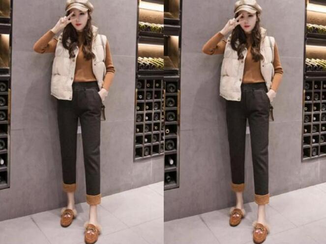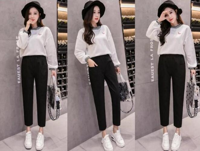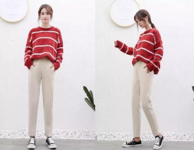我想说最舒适的搭配除了穿上一条休闲裤和平底鞋,其他的穿搭真的给不了你的,就好想这款,黑色的休闲裤,今年非常的流行,毛呢的材质,还十分保暖的哦,经典的高腰+小脚+九分的裤长,大多数身材都可以驾驭,想要显瘦显高的效果轻而易举啦,很简约百搭的款,搭配白色平底鞋,是最时髦最舒适的,还是冬天很流行的搭配,谁穿谁美。