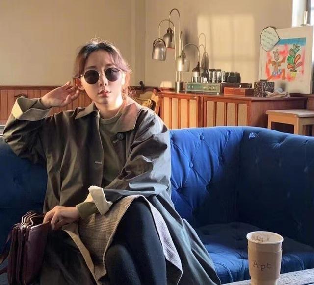 绿色风衣外套,其实是非常酷的,整体比较宽松一些,有中性的风格,而且搭配衫宽松的牛仔裤,在选择一双具有年代感的鞋子,这个整套的搭配就比较有年代的感觉,搭配上深色墨镜,给整个人增加气场的。与浅色的墨镜相比较而言,深色的墨镜更适合冬天的季节。