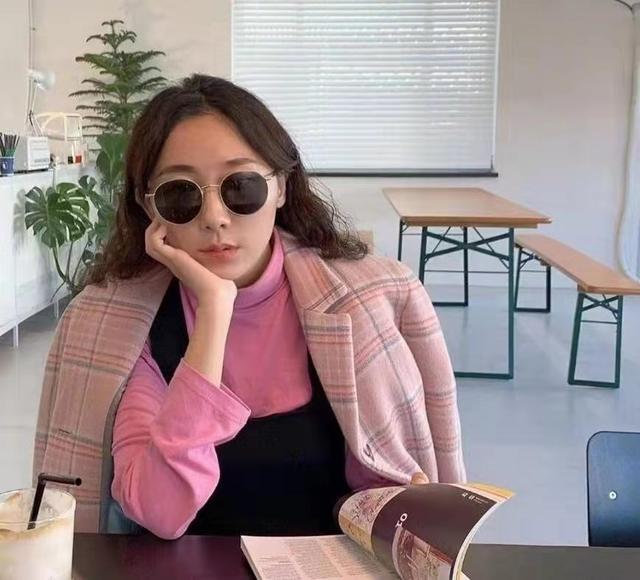 圆框的墨镜大多数搭配的是比较淑女可爱一些的风格,这个圆框的墨镜也比较小,边框非常的细致,比较适合淑女,比较甜美的搭配。这款西装外套是版型比较大一些的,披风的穿法保暖显气质,颜色是十分具有少女心的粉色,格纹的西服与高领衫,背带裤进行了多元的叠穿方式,很好看。墨镜还可以根据我们脸型来挑选。