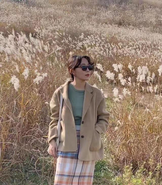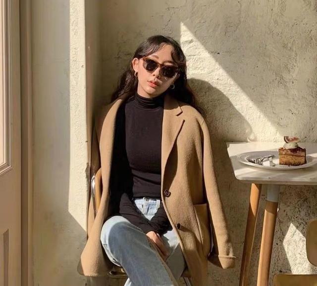 秋冬常见的双面尼短款外套很经常采用的颜色,就是卡其色可以看到这款卡其色的西装短款外套在进行搭配的时候,选择的是非常耐看的内搭以及修身牛仔裤,整体也让人觉得是有ins风格的,选择墨镜的时候,可以选择框是卡其色的,而且可以看到这款墨镜的框是透明的,比较的有灵气。
