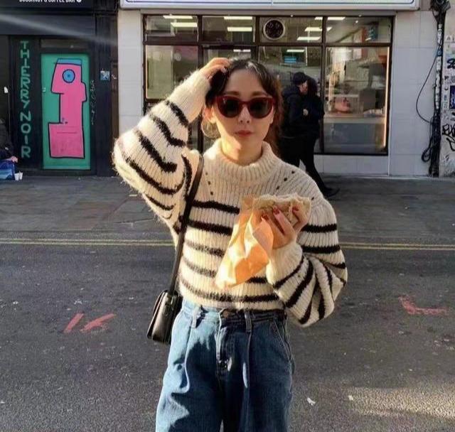 在韩国街头,墨镜应该是非常常见的,小姐姐们穿上毛衣搭配上高腰裤,再选择一个墨镜,非常的酷炫。这款条纹的毛衣是比较厚实一些的,而搭配上高腰的牛仔裤之后,整体的风格是比较韩风的,墨镜也是韩式风格,外观是棕色的,而且是上挑的墨镜形态,显得更加俏皮可爱。