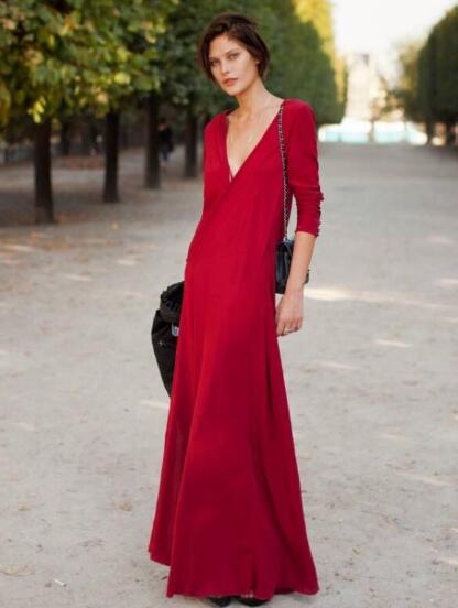 1 如果是一身红色,选择饱和度不高的红色,说白了就是暗红、深红、总之就是不要太艳的红色。如果就是很喜欢穿一身正红色,那就避免丝绸、雪纺之类看起来比较光鲜、女性化太强的面料,选择纯棉的、羊毛的、厚蕾丝的……总之面料有质感有肌理,那种面料有质感的红色穿一身也是ok的。