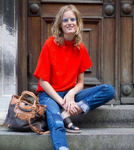 2 如果是半身红色,比如红色的上衣或裤子、裙子,因为占身体比例比较少,那就可以大胆选正红色,哪怕丝绸的高光面料也都可以接受。